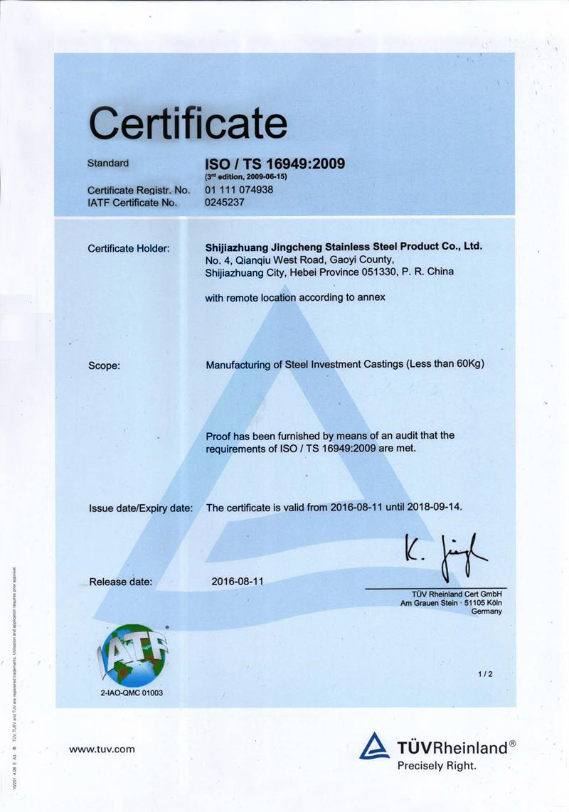 石家莊市精誠不銹鋼制品有限公司,是一家從事專業(yè)精密鑄造的企業(yè)。主要生產不銹鋼、合金鋼、低碳鋼及各種特種合金材質的精密鑄件及加工產品。